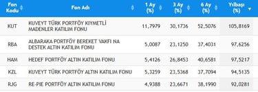 2025 yılında katılım fonları kategorisi, özellikle altın ve gümüş fiyatlarındaki güçlü yükselişten önemli ölçüde faydalandı. Değerli metallere ağırlık veren katılım esaslı fonlar, yılın en yüksek getirilerini sağlayan ürünler arasında öne çıktı.