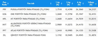 2025 Yılı Fon Analizi – En Yüksek Getirili Para Piyasası Fonları