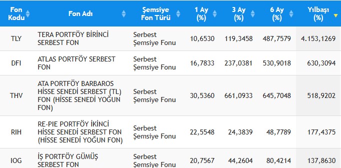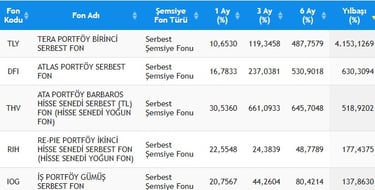 (TEFAS Verilerine Göre)